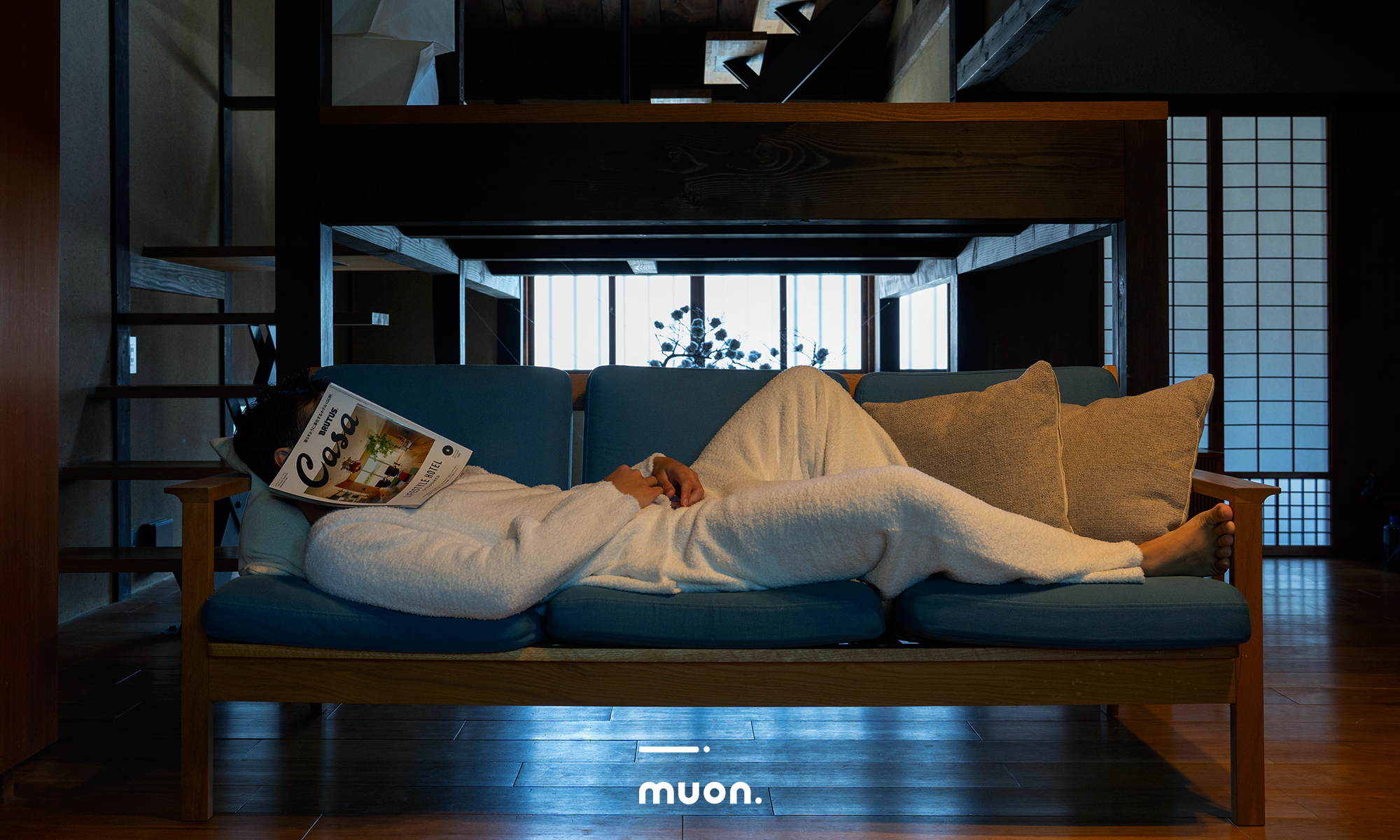現代を忙しく生きる大人のためのルームウェアブランド「muon.」です。余計なものを削ぎ落とし、本質だけを整えるという想いが込められています。ブランドロゴ「__.」も、まさにその哲学を象徴するもの。意味を詰め込むのではなく、空白や余白を象徴し静けさそのものをかたちにしました。